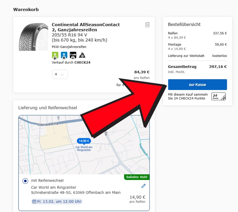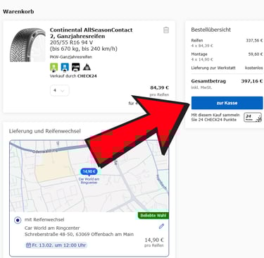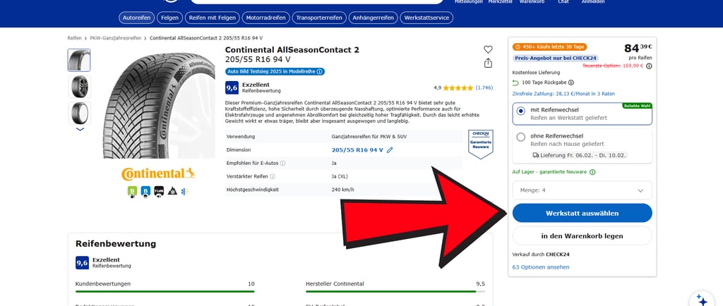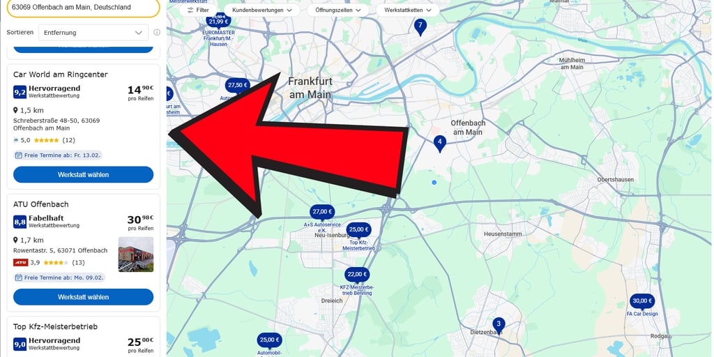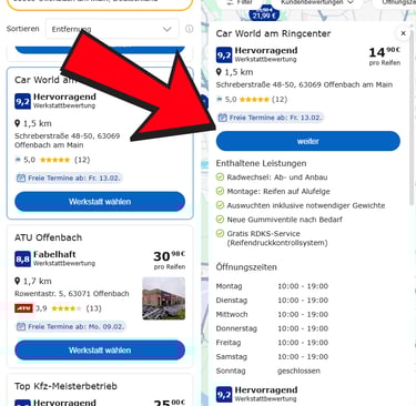 1.Suchen Sie sich ihre Reifen aus und wählen Sie eine Werkstatt aus