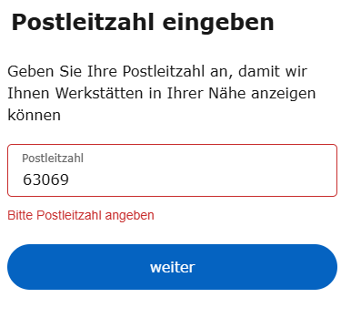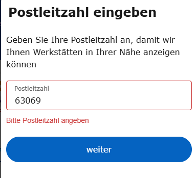 2.Geben Sie 63069 in der Postleitzahl suche ein