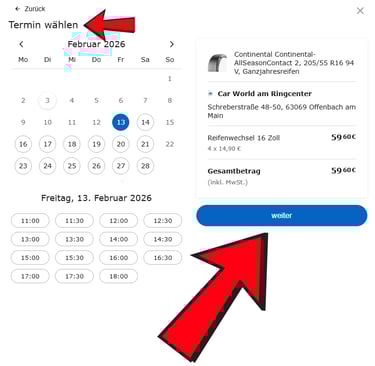 6.Suchen Sie sich einen Wunschtermin aus und drücken Sie weiter um fortzufahren